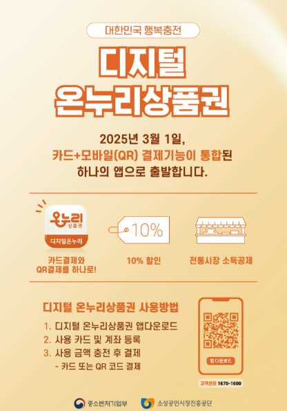 2025년에도 온누리상품권이 뜨겁다!전통시장 이용자라면 누구나 챙겨야 할 꿀혜택, 바로 디지털 온누리상품권입니다.✔️ 최대 15% 할인 구매✔️ 전통시장 소득공제 40% 혜택✔️ 모바일·카드형