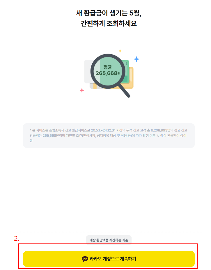 - 환급액이 확인된 후에만 결제 진행 → 예상 환급금 조회는 완전히 무료