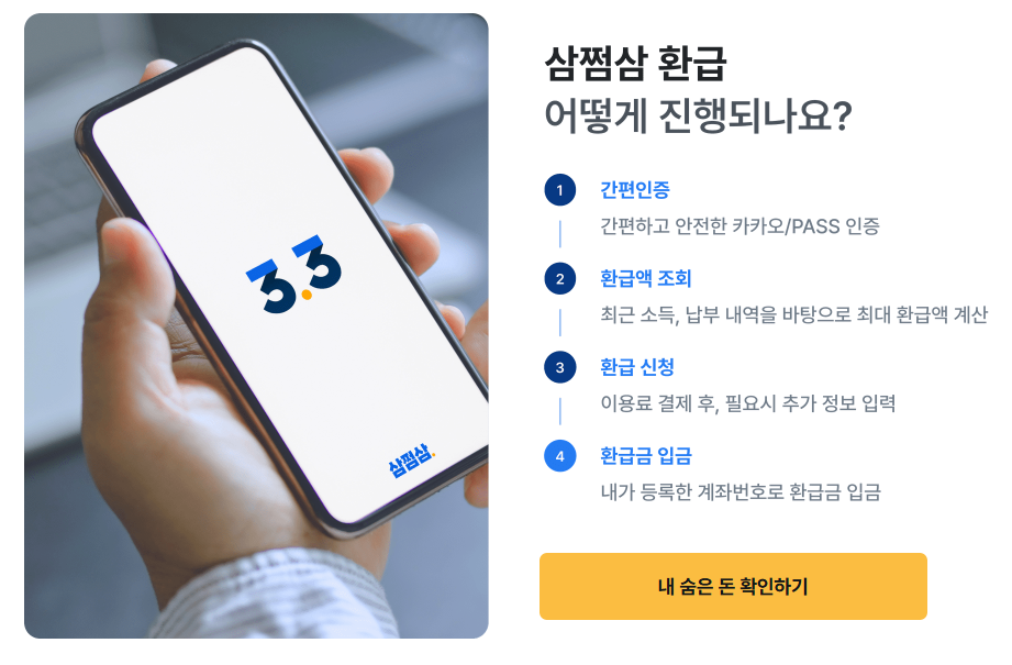 프리랜서, 알바, 배달라이더 등 3.3% 원천징수 대상자라면 누구나 환급받을 수 있다는 삼쩜삼.