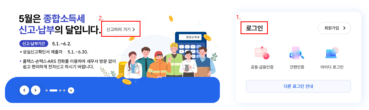 - 국세청 홈택스 접속 및 로그인