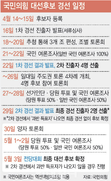 → 결과 발표: 4월 29일 - 최종 경선 (5월 1~2일)