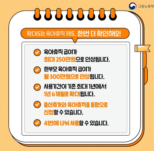 - 예시) 아빠가 3개월, 엄마가 그다음 3개월 → 둘 다 최대 300만 원까지 지급